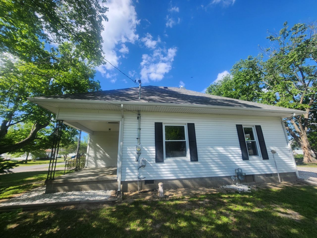 This well-kept 2-bedroom, 1 bath home offers comfortable living on a spacious double lot with room to relax and expand - care free vinyl siding - welcoming front covered front porch read for evening wind downs or morning coffee -spacious room - dining room open to living room - updated and equipped eat-in kitchen - updated bathroom/laundry with washer and dryer included - newer roof -simplicity, space and value all in one package
